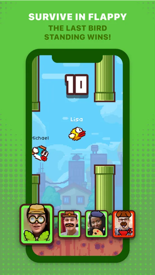 ◉ Flappy: Flap through the pipes with friends - the last bird standing wins