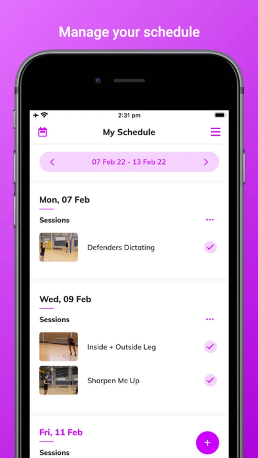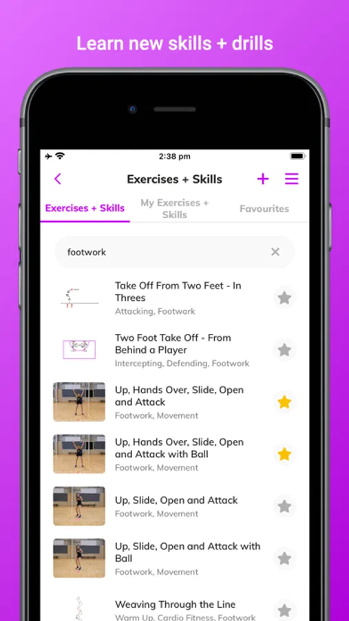 Access our growing skills and drills library to build your own sessions. Almost 400 exercises, skills and drills to search, save and build your sessions with. Save your sessions, then add them to your training schedule to track all your training and matches in one place.