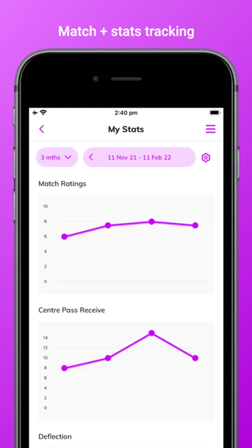 Set and share your match goals with your coach. Record and track your stats and progress over time. Review your match performances and set goals to motivate yourself and improve.