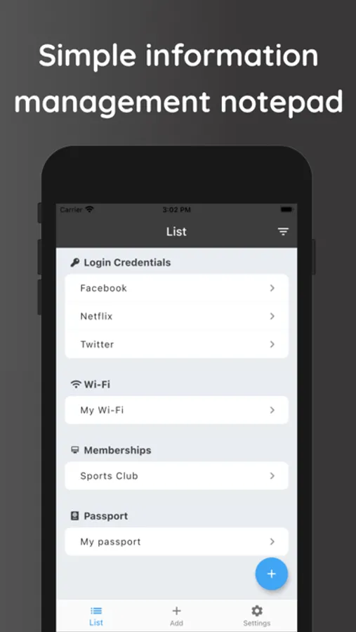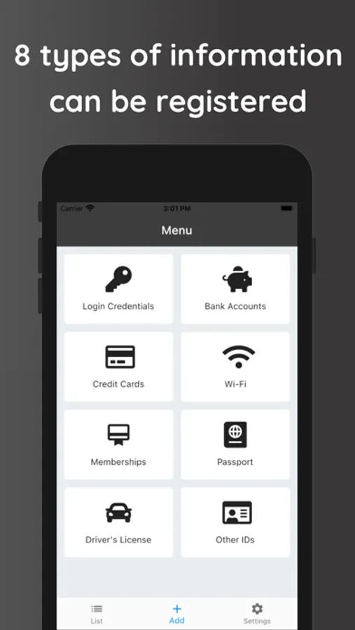 “MyInfo” is an app that allows you to manage all the information you need in case of an emergency, such as login information, Wi-Fi passwords, passports, etc.