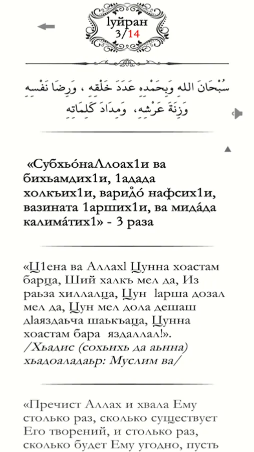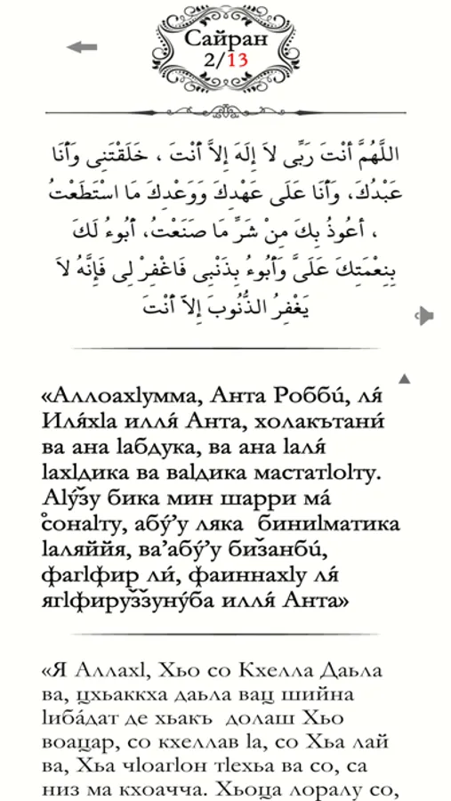 Укх жайна т1а в1ашаг1теха да 1уйранеи сайранеи вай Пайхамаро (Аллáхlа салот-салам хилда цунна, цун дезалашта а, цун асхьабашта а, радыяЛлах1у 1анх1ум, царна т1ехьа мел волчоа а. Амин) дийша дола ду1аш. Укх ду1аша (азкараша) Даьла низаца, т1аргам (щит) санна лоравергва саг б1аргах а, бозбуачалах а, кхыдолча воча х1амаех а, х1ара дийнахьа уж дешаш хилча.