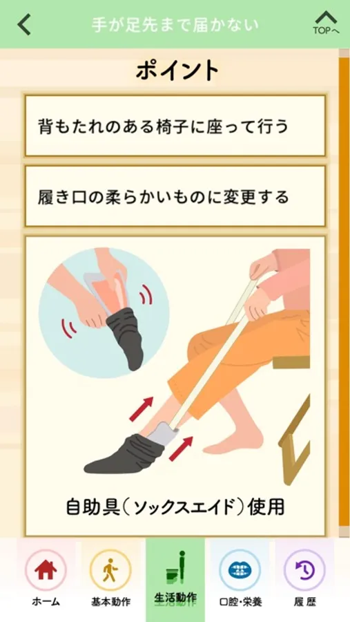 ・一度ダウンロードすれば、その後ネット接続がなくても、介護現場ですぐにリハガイドを使って対応方法について調べることができます。