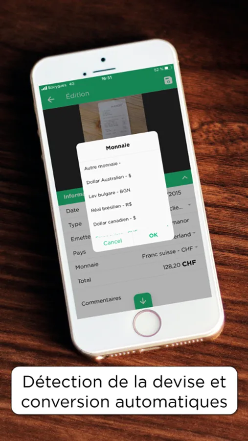 RAPIDE : Grâce à la technologie OCR ou Océrisation, l’application convertit automatiquement la photo de votre reçu en un formulaire modifiable.