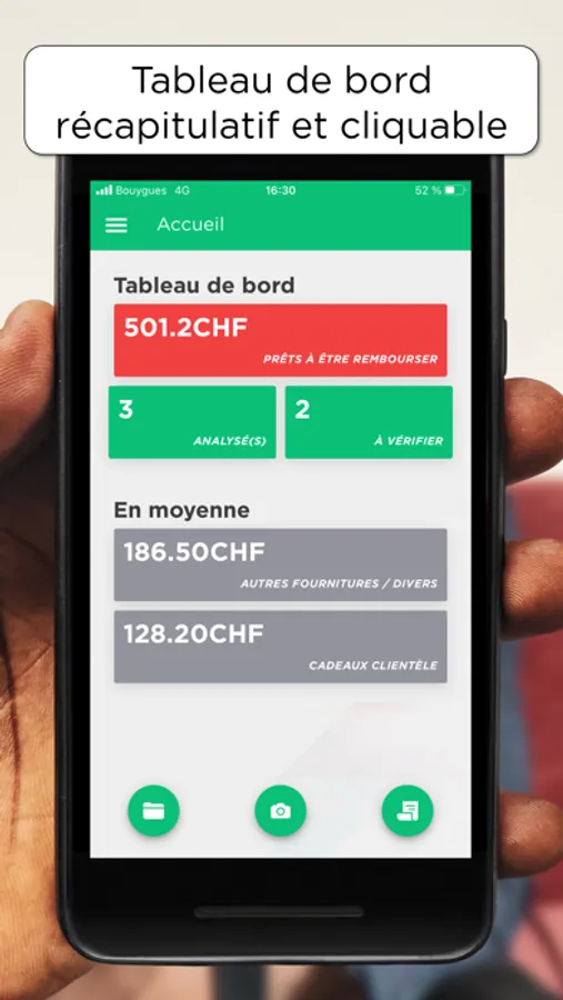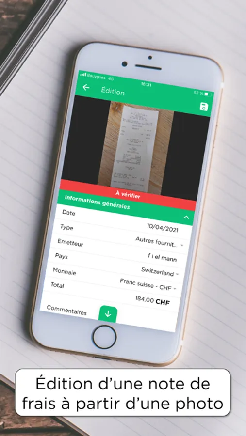 SIMPLE : Il vous suffit de prendre une photo, vérifier le formulaire, corriger si nécessaire et envoyer la note de frais à votre manager.