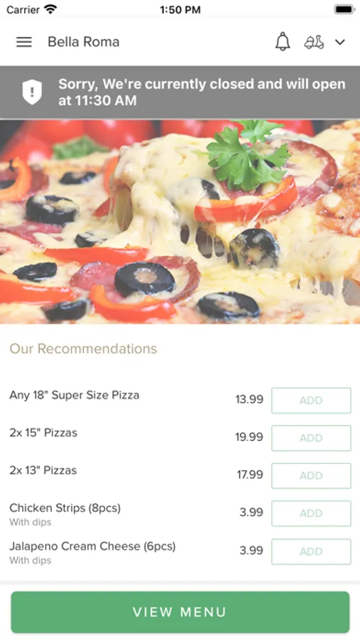 Order food online in Eastcote! It's so easy to use, fast and convenient. Try our new, online app which contains our entire takeaway menu. The Bella Roma is located in Eastcote. You can now order online, all your favourite dishes and many more delicious options, and have them delivered straight to your door in no time at all. Here at Bella Roma we are constantly striving to improve our service and quality in order to give our customers the very best experience. As a result, we are finally proud to unveil and introduce our latest improvement, our new online ordering app! You can now relax at home and order your favourite, freshly prepared meals from Bella Roma, online. You can even pay online!