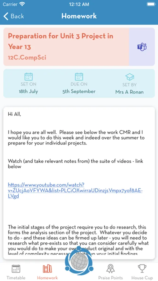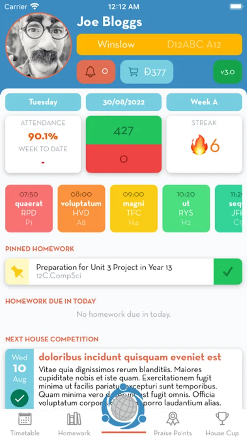 An app for Droitwich Spa High School students to view their timetables, homework, praise points and the house cup standings.