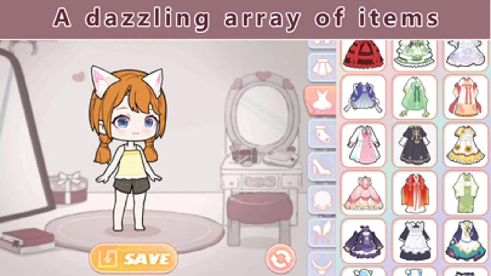 Here, you can have a shining wardrobe, a cute gashapon with a burst of girly hearts! A variety of dressing styles, whether it's court dress, cute LOLITA or the mature style of the royal sister can be freely matched as you like. In addition, you can also DIY backgrounds for your dolls, switch various character actions, take pictures of her/him, and make beautiful avatars and wallpapers! Use your imagination, so many ways to play, it's up to you!