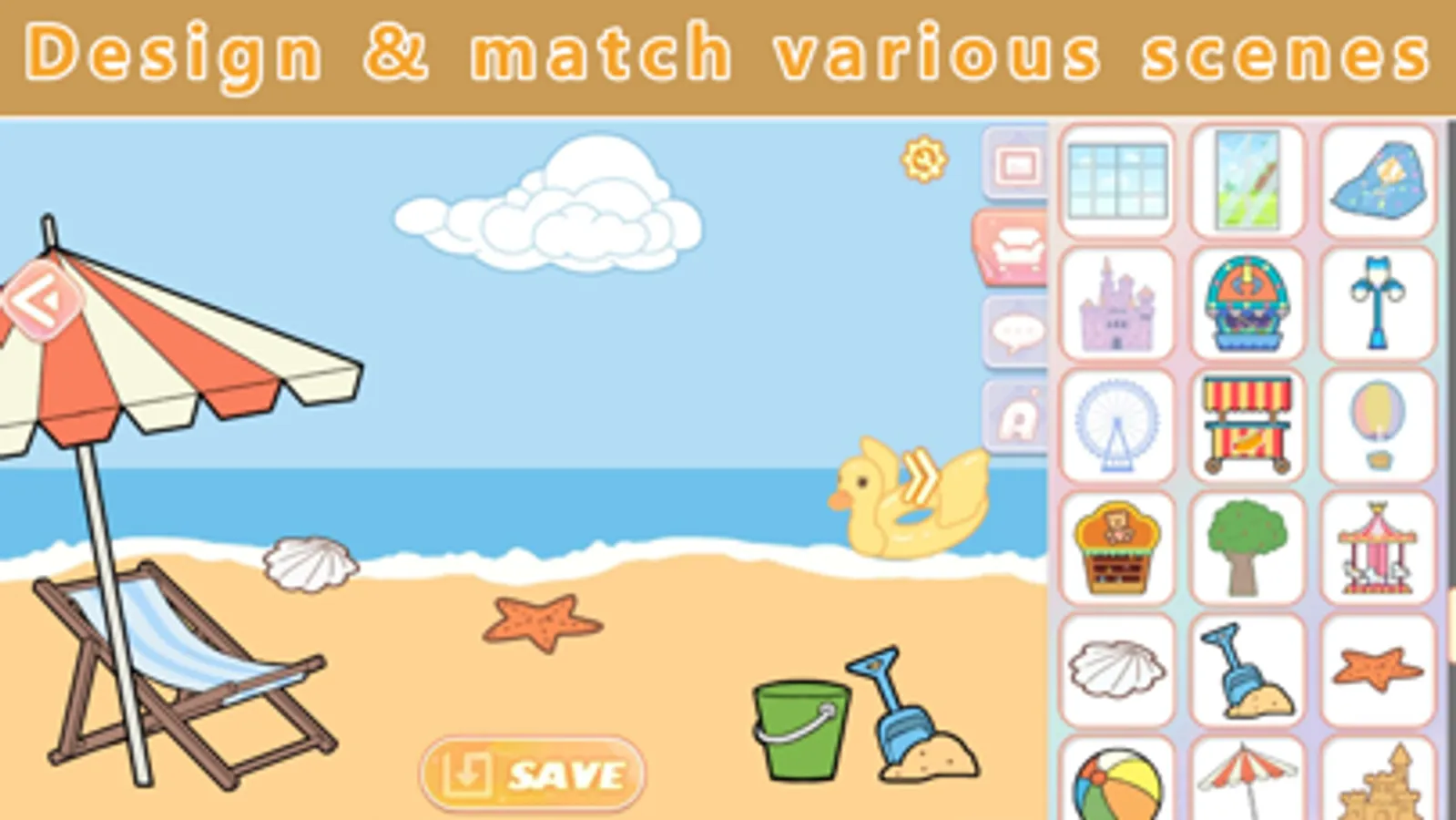 3.Scene creation: After creating the character dollify , the player can choose the appropriate background according to the style of the doll. Different backgrounds, different doll shapes, and various pictures are composed!