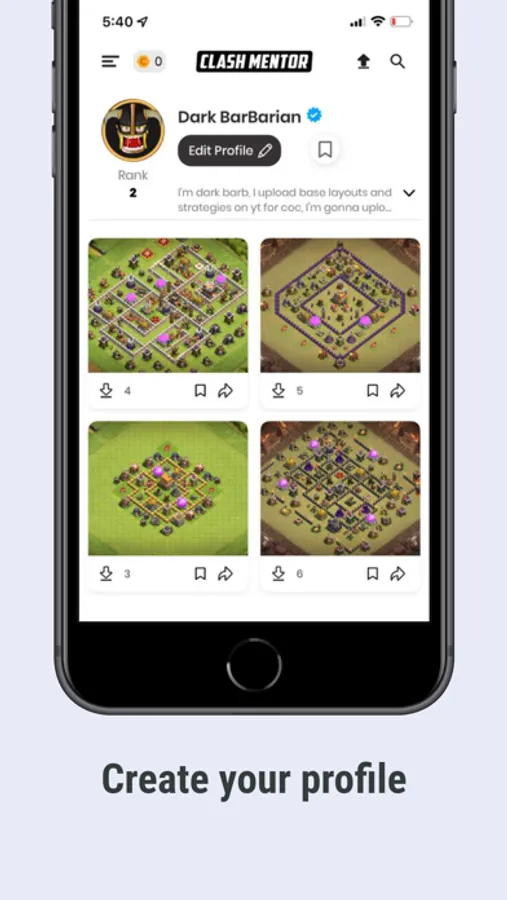You can create your profile page, where you can add your bio description, clash of clash player ID, so other users can check out all the bases you've uploaded by simply opening your profile.