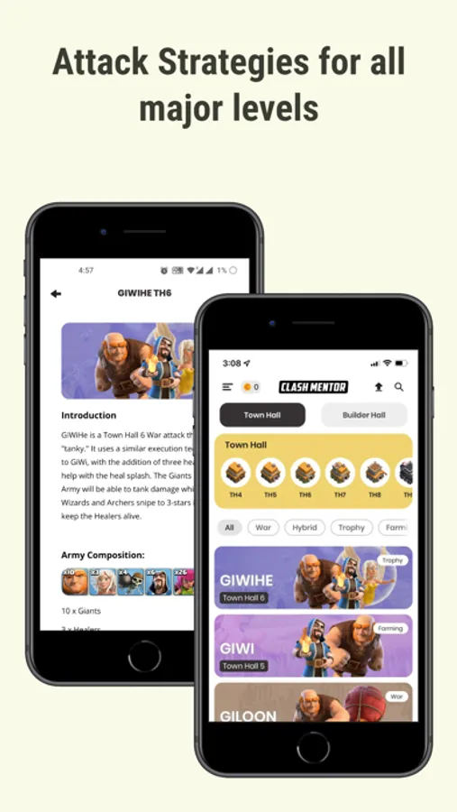 We have made a strategy tab, where you can read different strategies like farming, trophy pushing, war strategies for every town hall and builder.