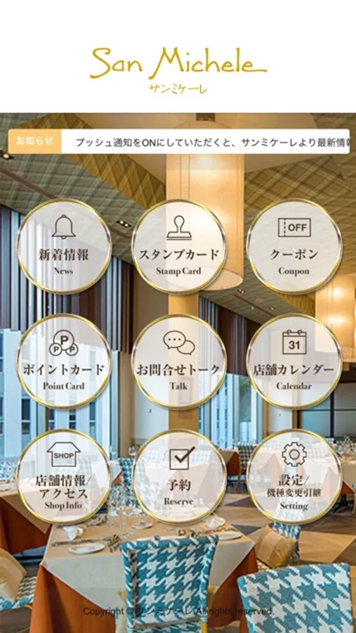 ・【サンミケーレ】からの最新情報をプッシュ通知で受け取れます。