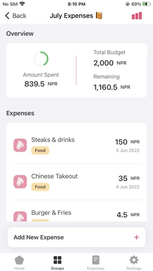 - Expense History: Keep track of all your expenses. See how much you spent and if you are within the budget.