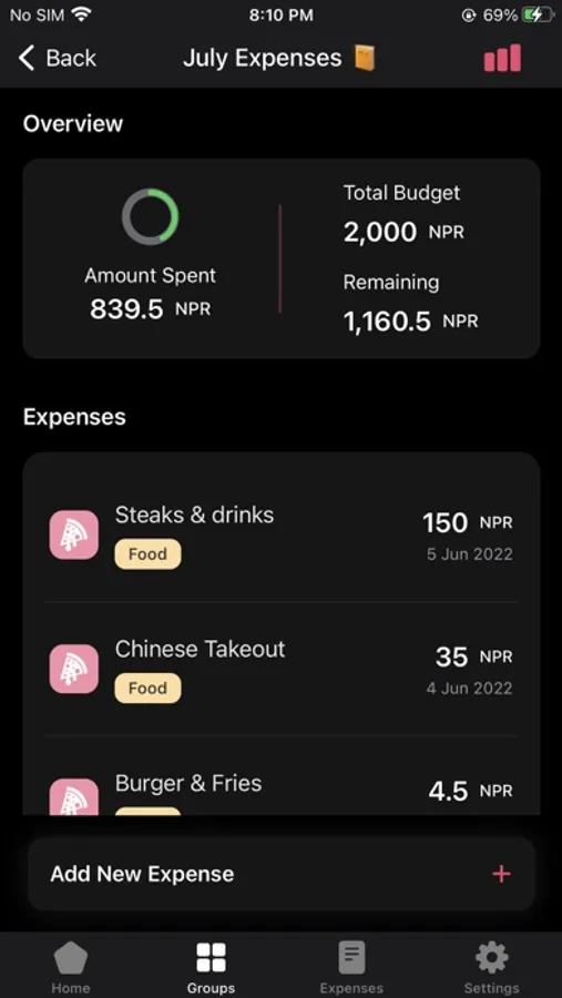 - Expense Summary: Visualize your expenses in a graph per each category. See what you spend most on.