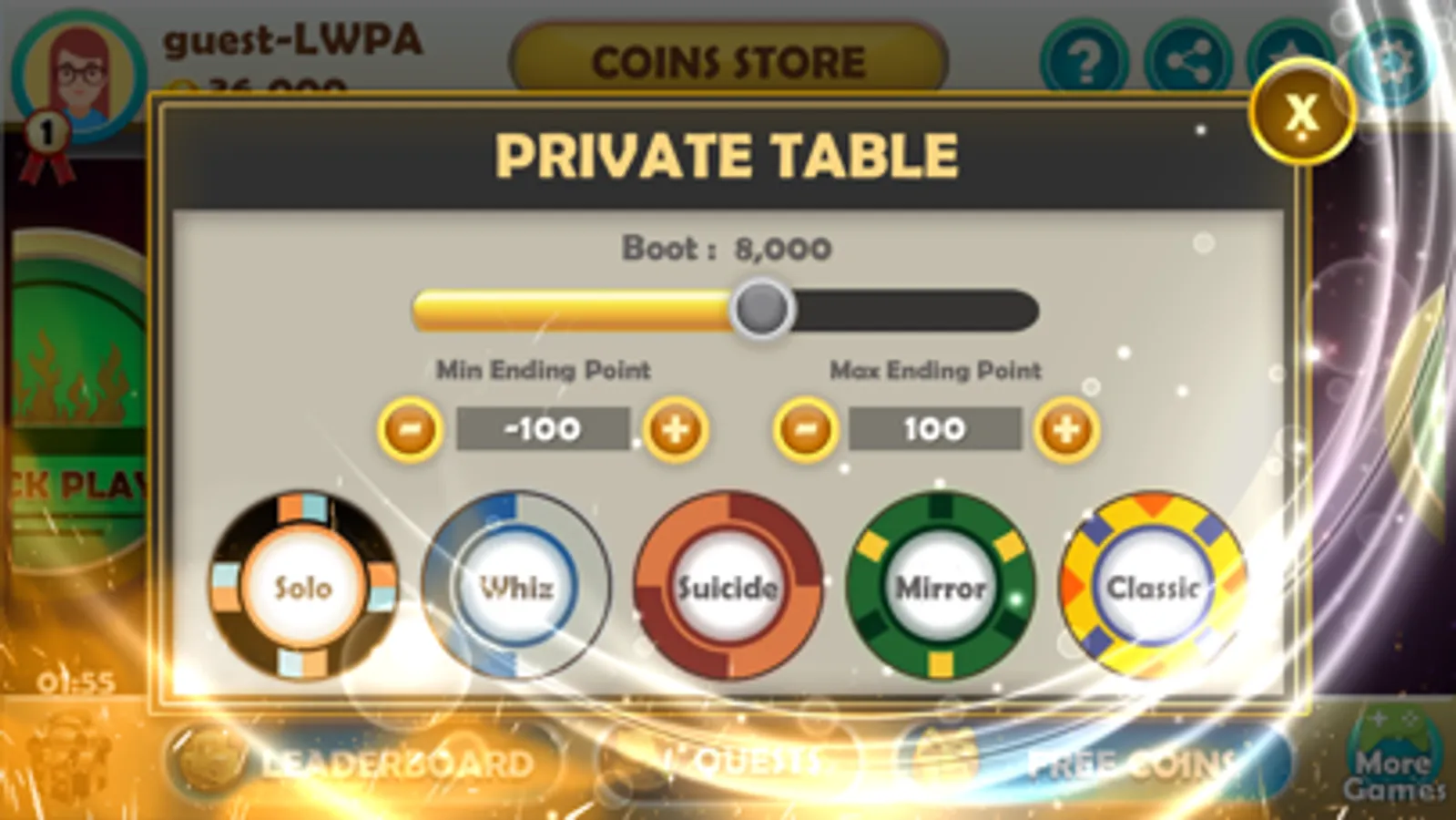 -Get 1,00,000 coins as a Welcome Bonus to spades, and get even more coins by collecting your “Daily Bonus” every day!