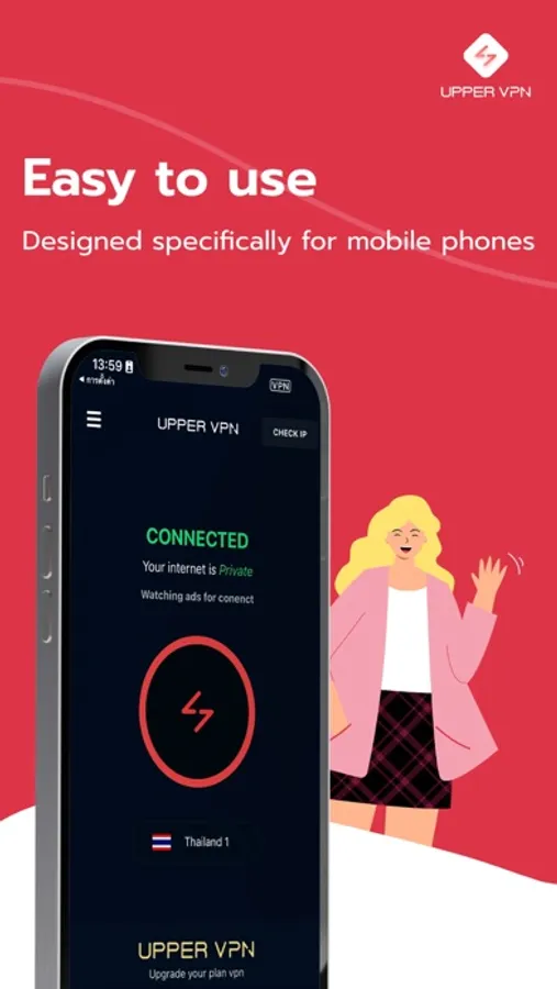 Can connect quickly with the Smart Server VPN system, with just one touch. And the speed is not reduced, no limit on connection time. In addition, UpperVPN is Designed specifically for mobile phones.