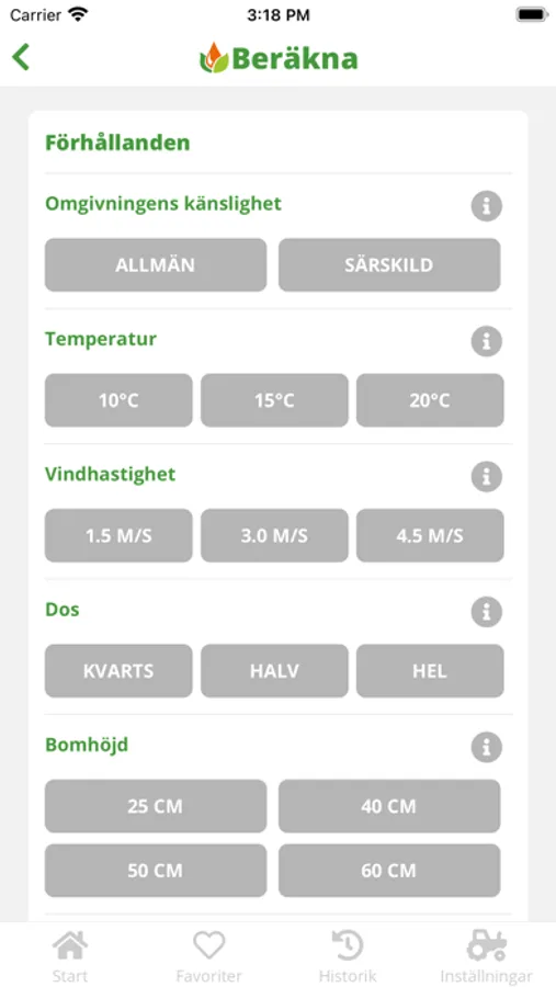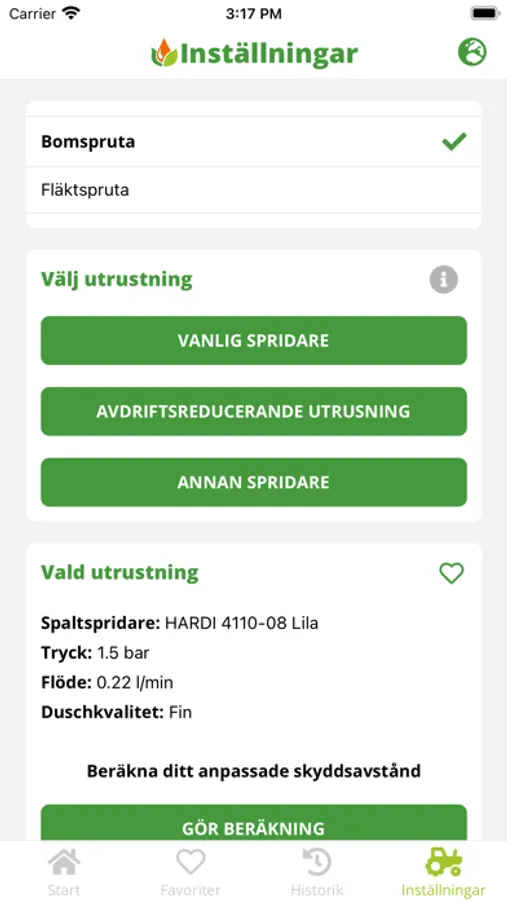 Hjälpredan hjälper dig som använder växtskyddsmedel att räkna ut hur stort anpassat skyddsavstånd du behöver lämna. I appen väljer du bom- eller fläktspruta.