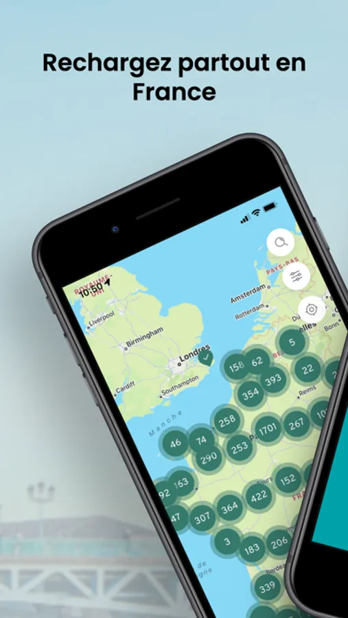 - Obtenez des informations en temps réel (disponibilité, vitesse de charge, types de prise, tarifs...) ;
