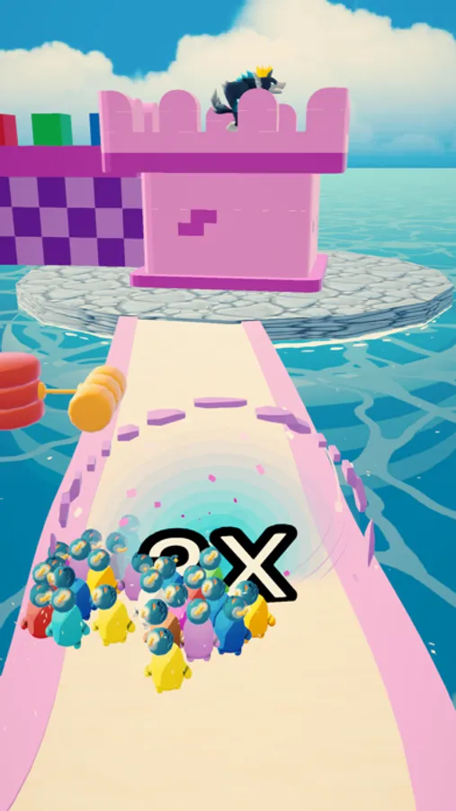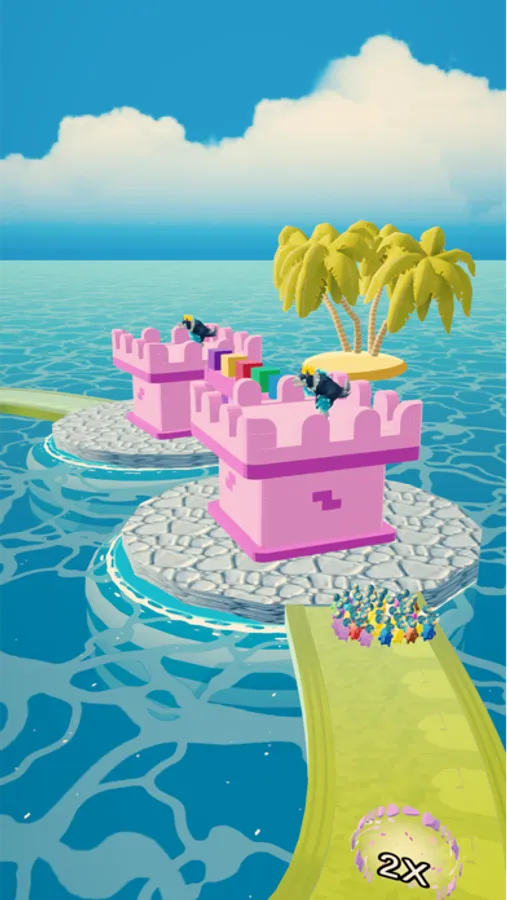 Manage the characters with bombs in their heads. Overcome obstacles, quadruple your number at once. The larger the group, the more difficult it is to manage. Blow up the castle with the largest group to make it explode. Enjoy the challenging levels and keep running! Test your reflexes while trying not to be hit. Move your finger to avoid obstacles.