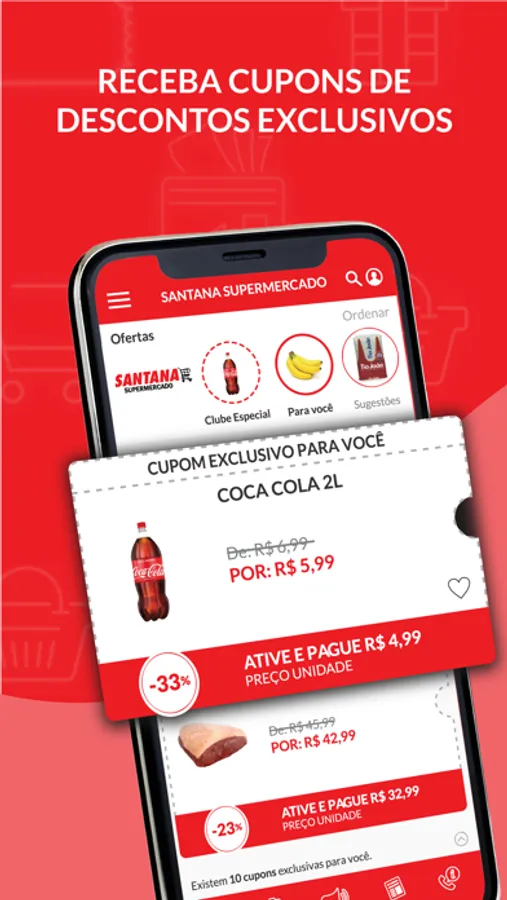 Viu quantas vantagens? Comece a aproveitar tudo isso, fazendo o download gratuito do aplicativo Santana Supermercado.