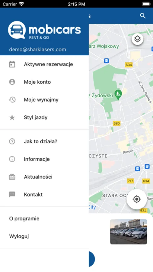widzisz na mapce, gdzie jest zarezerwowany przez Ciebie pojazd,