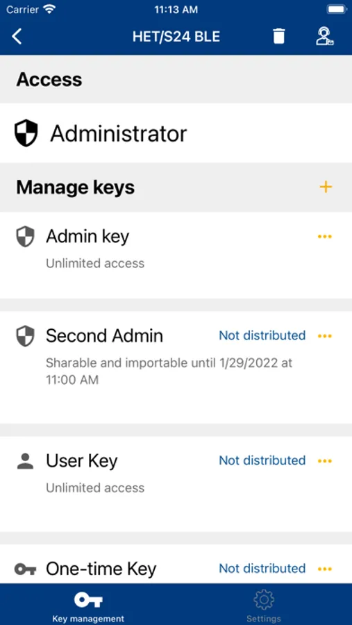- Permissions (keys) are created on the administrator’s app, can be issued either temporarily or permanently and can also be deleted.
