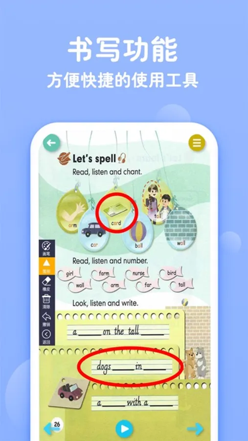 【4】画笔功能,全屏涂鸦让学习更加的有趣让学习更加高效率。完全同步最新发行教材,绝无缺漏页现象。
