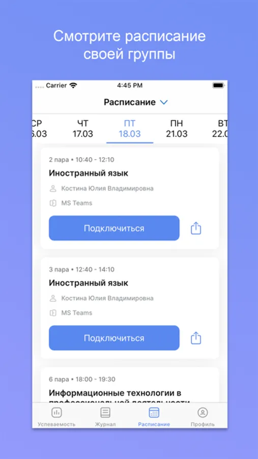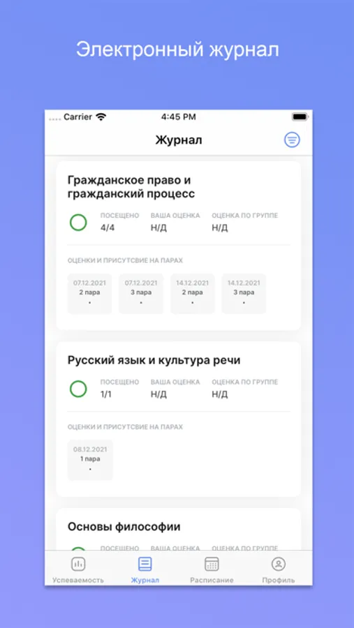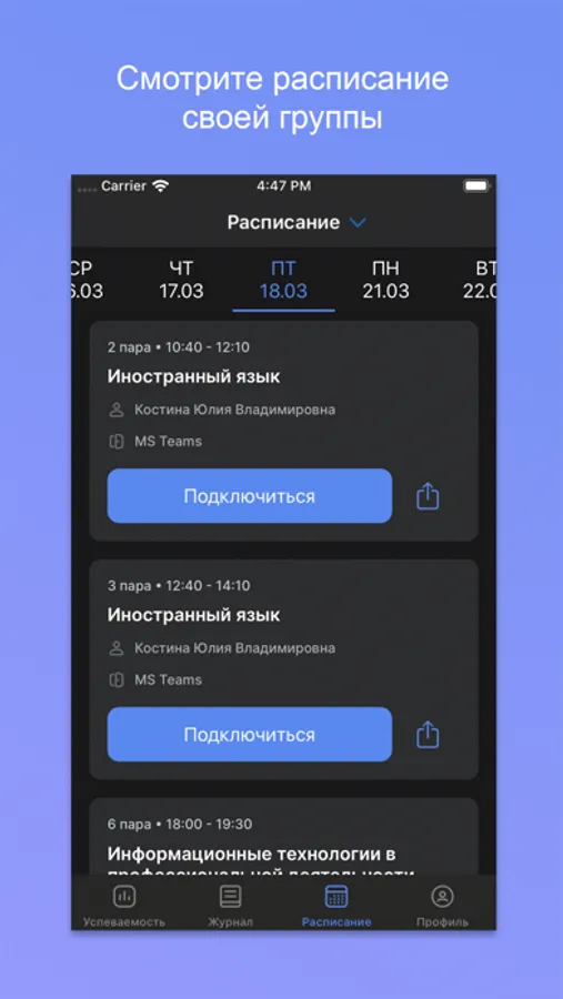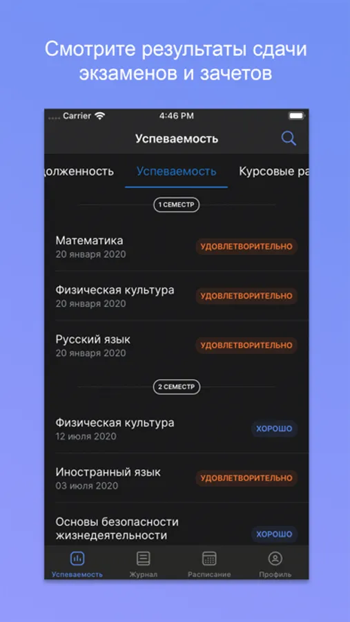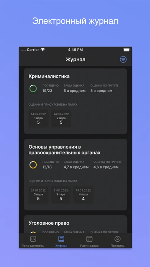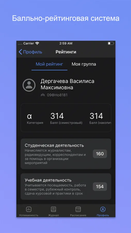 Информация об успеваемости, расписание группы, электронный журнал, рейтинги, уведомления всегда с тобой и доступны оффлайн