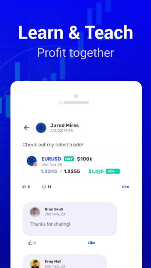 Live Forex is the ideal platform to engage, connect, and share strategies with other traders. It enables you to replicate top-performing traders’ portfolios.