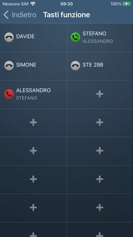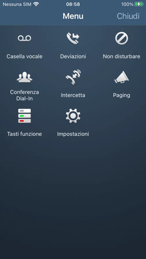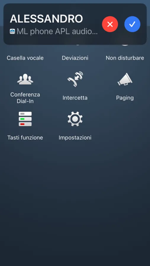 Trasferta, Deviazioni, Conferenza, Mute, Non disturbare, Attesa, Richiamata, Intercom, Paging, etc.