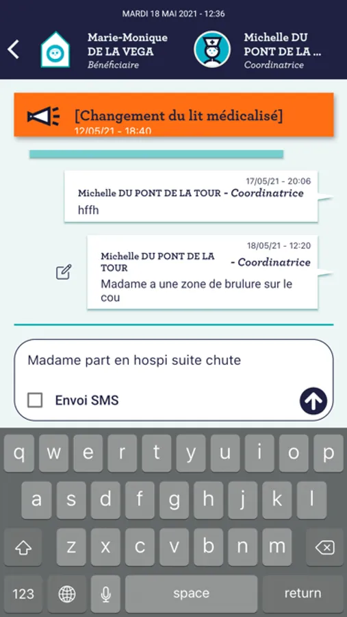 Un message urgent ? cochez la case “envoi SMS” : un SMS sera envoyé au coordinateur afin qu’il en soit immédiatement averti.