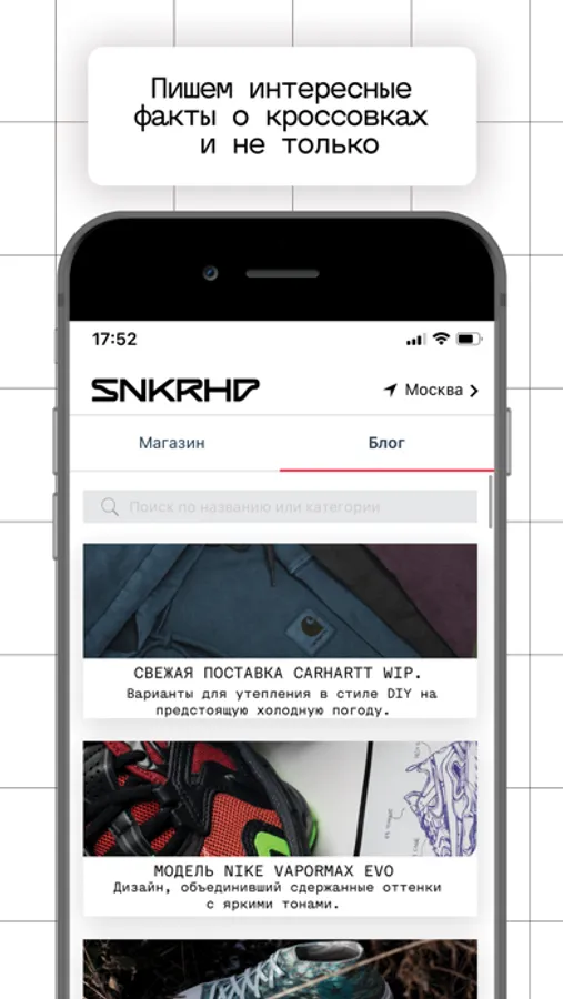 Онлайн-покупка кроссовок от топовых брендов в мобильном приложении – это возможность получить заказ в любую точку страны в кратчайшие сроки, взять на примерку соседний размер, не переплачивать за доставку из зарубежья. Интернет-магазин кроссовок Sneakerhead формирует свой каталог из оригинальной продукции Nike, adidas, Jordan, Reebok, Puma, New Balance, ASICS, Converse и десятка других брендов, чье имя на слуху у сникерхедов.