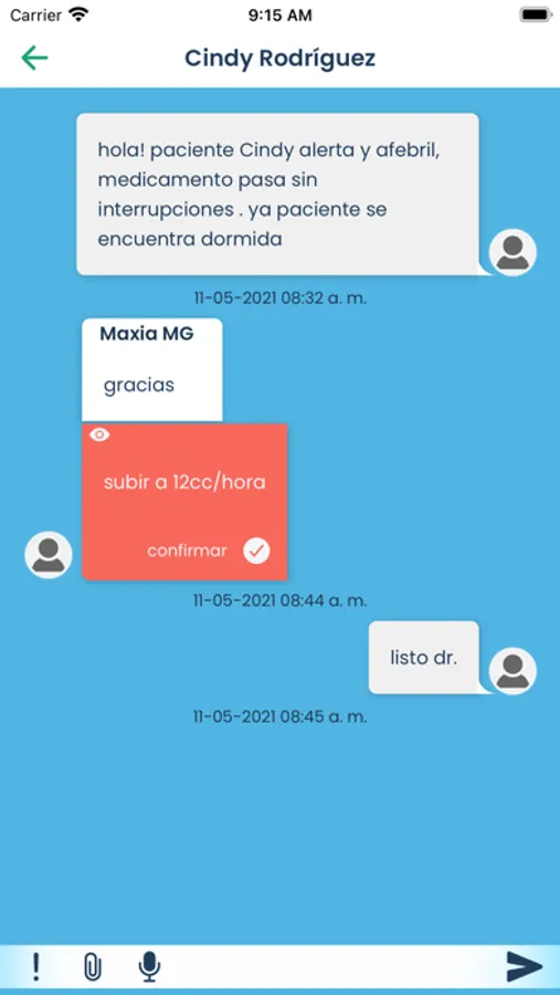 * Informes de Evolución (Plan de cuidado, signos vitales, visitas médicas, laboratorios clínicos).