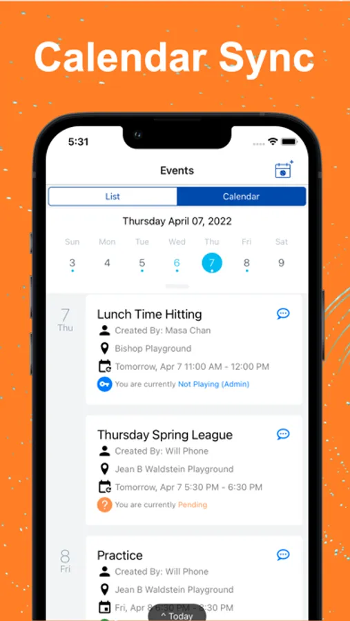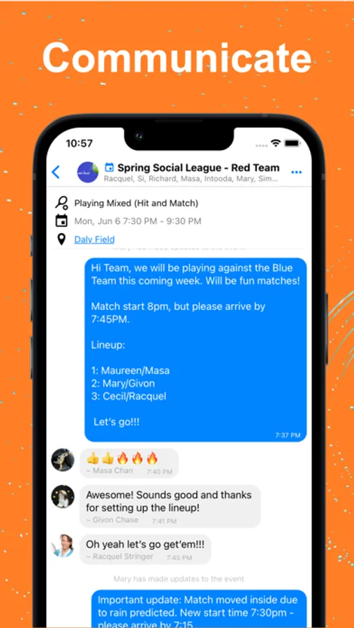 Mark players as Friends and create a short list of players you schedule and communicate with most often. Send private messages and share administration of frequent events.
