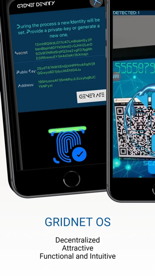 The app has been designed to serve as an authorization app for tasks performed within the decentralized GRIDNET Operating System. The default view is the augmented reality view in which QR Intents may be scanned.