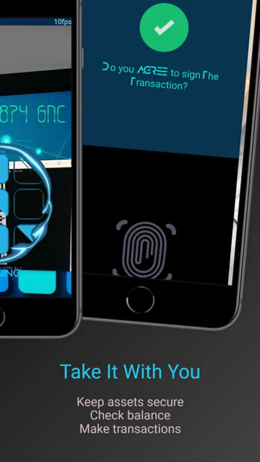 1) First, set-up your wallet by generating a new private/public key pair - it takes just a single tap, then confirm by holding the virtual fingerprint sensor for a few seconds.