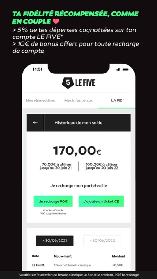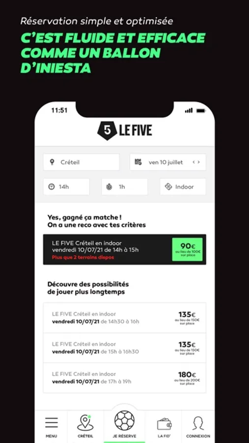 Moderne et simple d'utilisation, l’application LE FIVE t’accompagnera et te permettra de profiter pleinement de nos terrains: