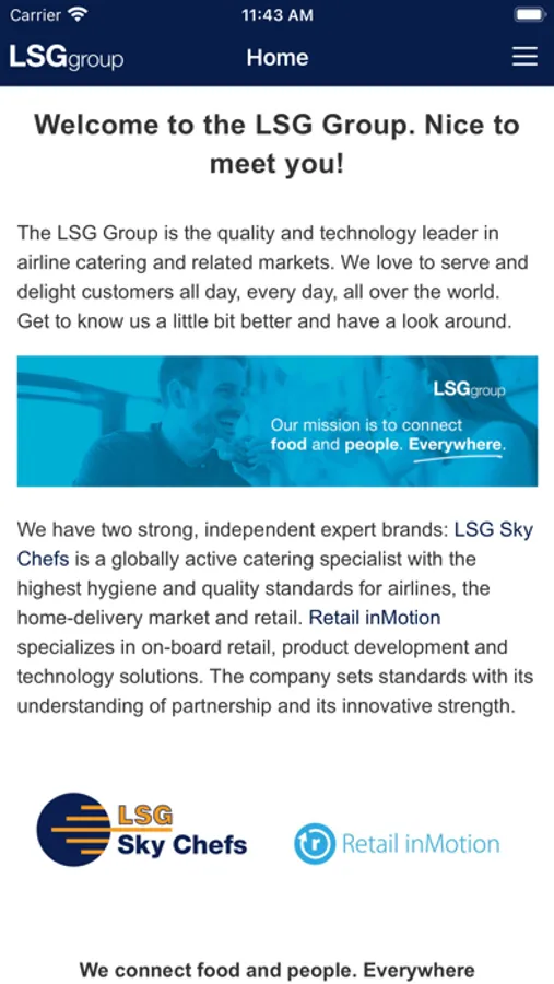 The LSG Group is the quality and technology leader in airline catering and related markets. The company is headquartered in Neu-Isenburg, near Frankfurt, Germany, and has an extensive network of joint ventures and partnerships around the globe. It has two strong, independent expert brands: LSG Sky Chefs, a globally active catering specialist with the highest hygiene and quality standards for airlines, the home-delivery market and retail. Retail inMotion, which specializes in on-board retail, product development and technology solutions, sets standards with its understanding of partnership and its innovative strength.