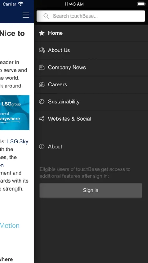 touchBase is the digital communication hub of the LSG Group. The mobile communication app provides employees, partners and other stakeholders with news and information from all across the company in an easy, convenient manner. Learn more about our mission and vision, get to know our expert brands and industry. touchBase highlights strategic topics like sustainability and illustrates career prospects at LSG Group. In addition, the app offers important documents and connects people. Learn more about our business, our industry, projects and our people. Let's touchBase.