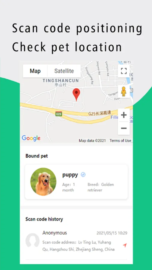 Bind the QR code card to the pet. If the pet is accidentally lost, you can obtain the pet's location information through the pet details page to increase the pet recovery rate.