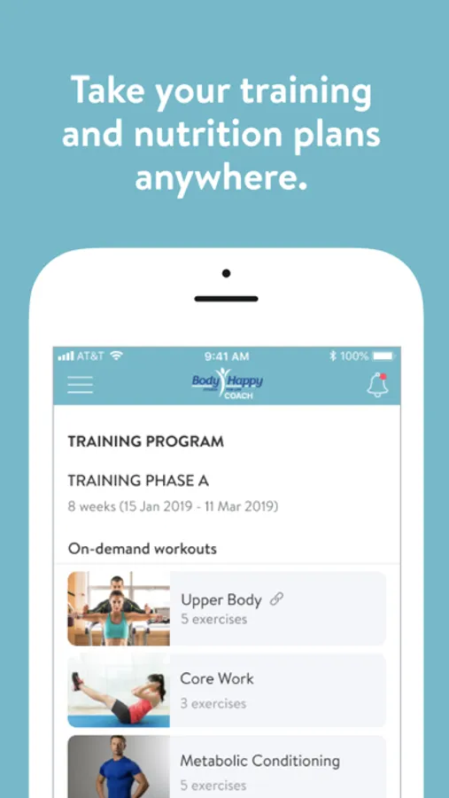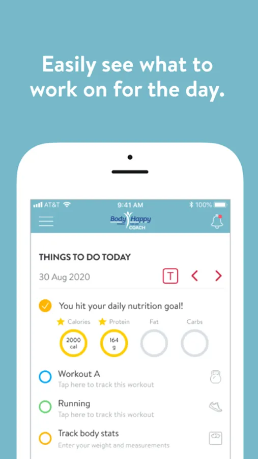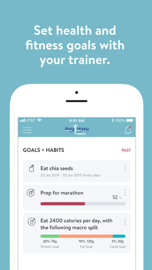 With the Body Happy Coach App, you can start tracking your workouts and meals, measuring results, and achieving your fitness goals, all with the help of your personal trainer.