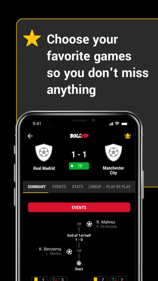 We also offer you an ideal second screen experience so you won't miss any detail while watching your favorite team's games from your mobile phone.