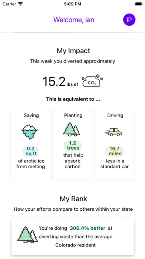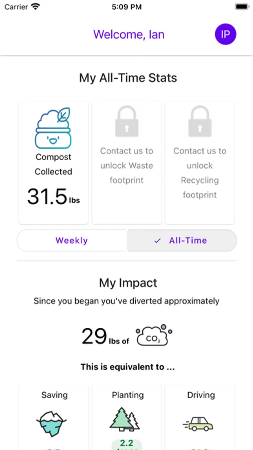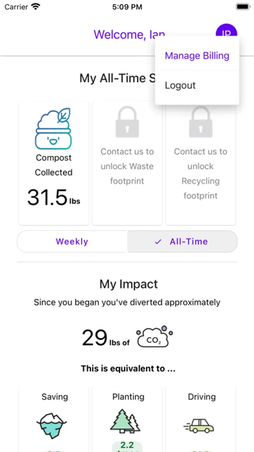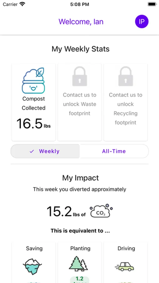 Track the impacts of your recycling, compost, and waste habits with Clementine Curbside. If you're already subscribed to our services you can view your impacts by week or over all-time.
