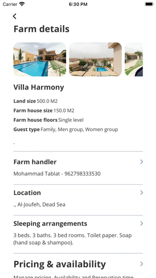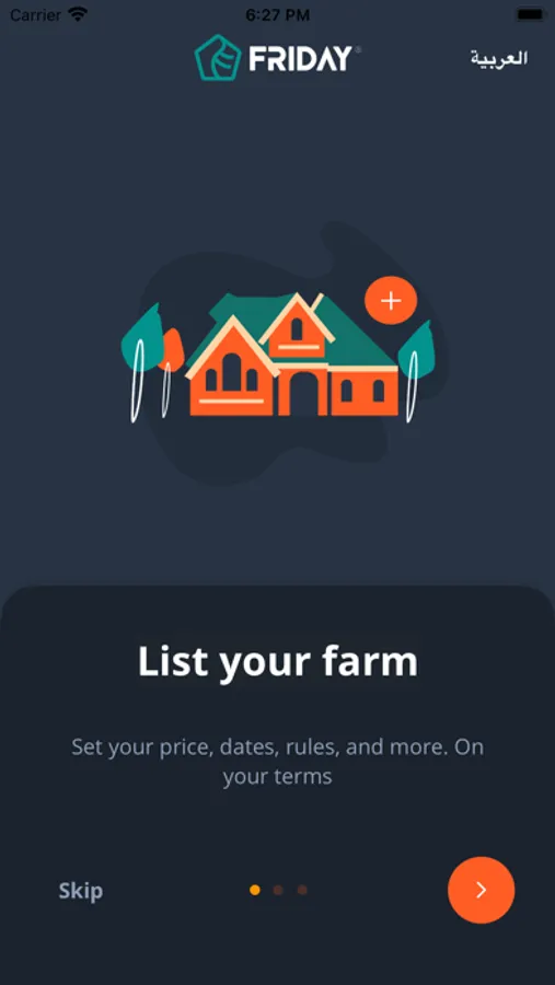 يمكنك التطبيق من استئجار مزرعة لحجز إقامة ممتعة في المكان الأمثل لك وفق تفضيلاتك في ربوع الأردن، حدد وجهتك واستعرض الخيارات المتاحة سواءاً في يوم جمعة أو أي يوم في الأسبوع