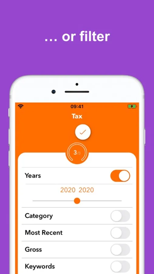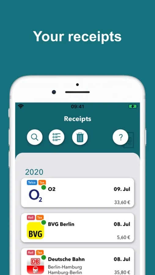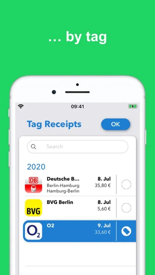 All receipts in your iPhone. Collect, sort and print them any time if needed.