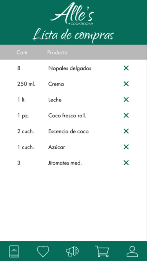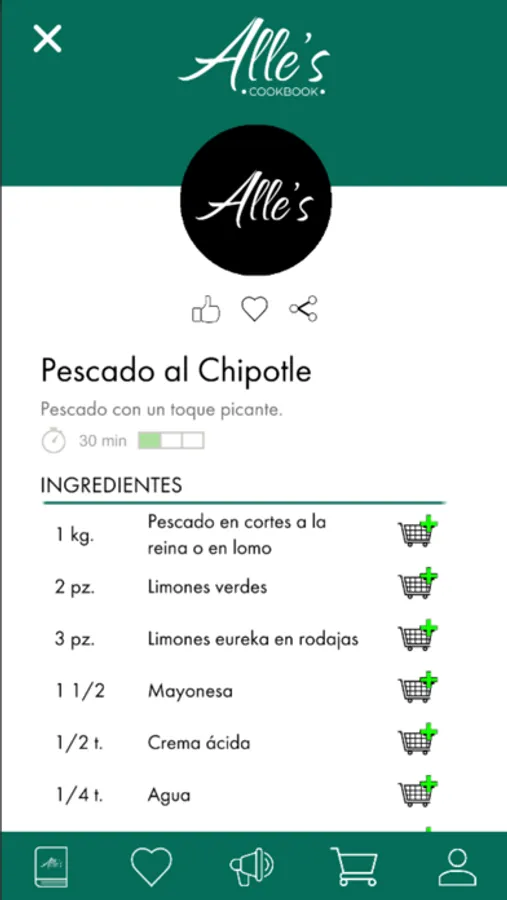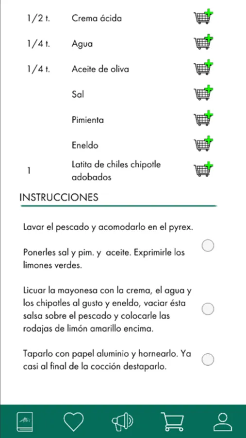 ◦Marcar los ingredientes que te hacen falta en una receta para agregarlos a tu lista de compras.