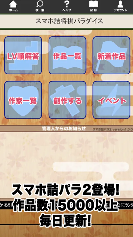 また詰将棋作品は毎日新しいものが更新されます。その際は「新着作品」に載せられますのでクリア順ランキング上位が狙えます。