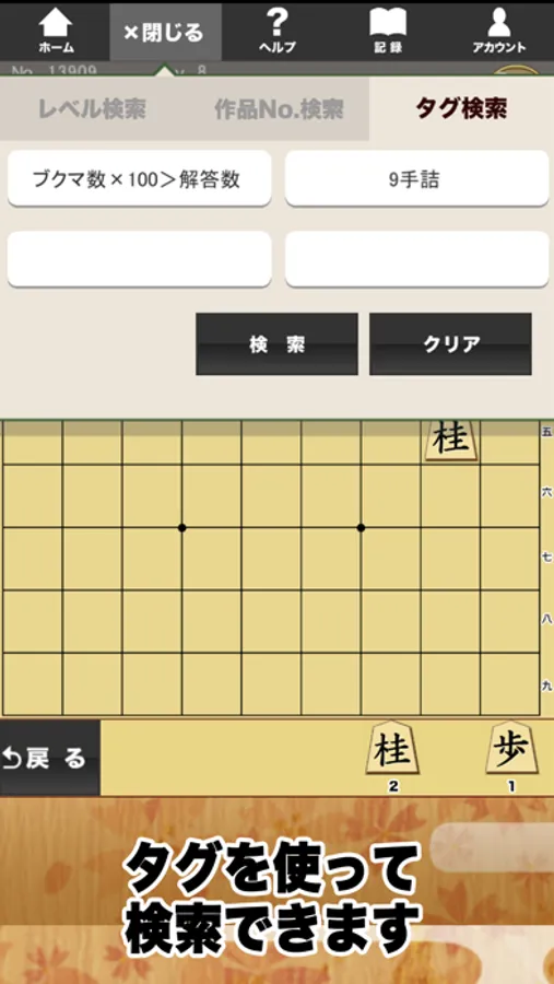 詰将棋作家2900名による15000題以上の作品を公開します。レベル設定は30段階。詰将棋を解いてレベルを上げると、より多くの作品にトライできるようになります。 それぞれ個々の問題でタイムアタックランキングとクリア順ランキングがあります。がんばってランクインを目指しましょう。