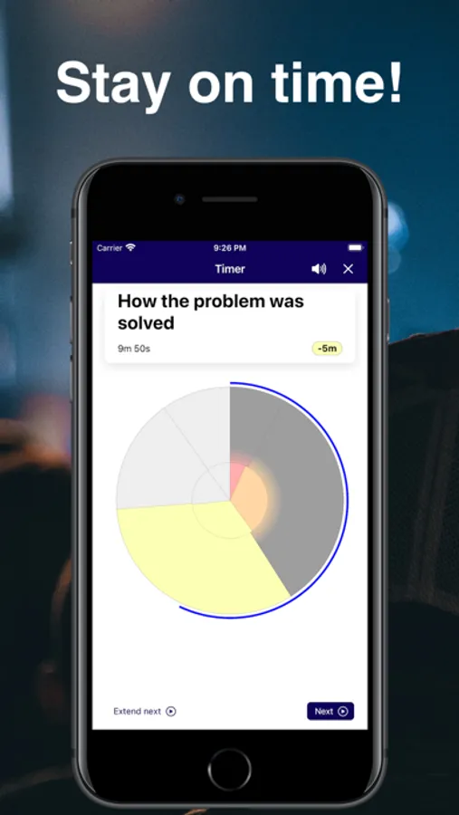 When it's time for you to give your talk, speech or presentation, chair your meeting or teach your lesson; start the timer and TimeWatch will track the time you're spending on each section.