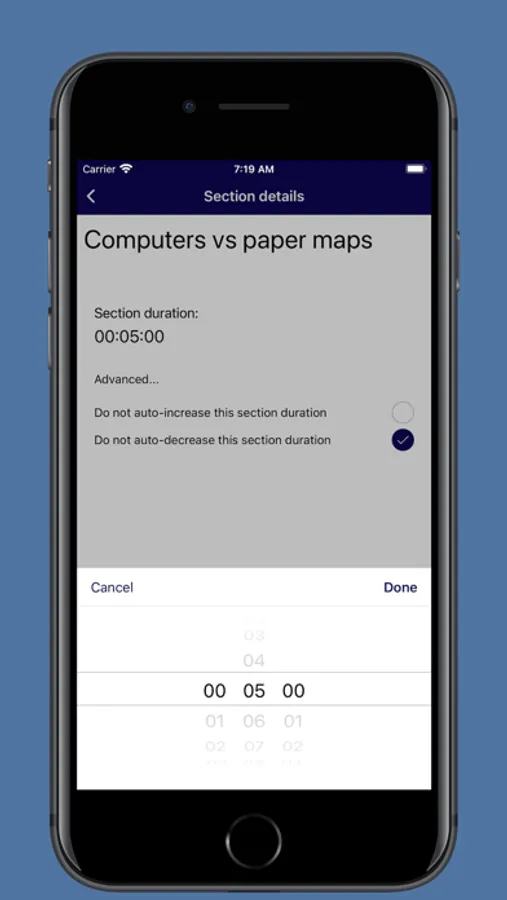 Add sections and set the duration for each one.