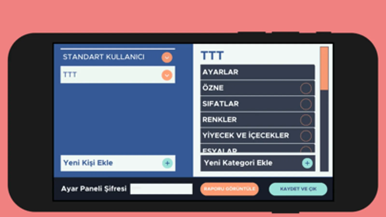 Kategori ekleyebilme
